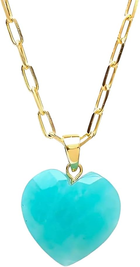 Gempires Paperclip Gemstone Heart Pendant Necklace for Women, Faceted Crystal Heart Necklace with 14k Gold Plated Hypoallergenic Adjustable 18 Inch Necklace for Her