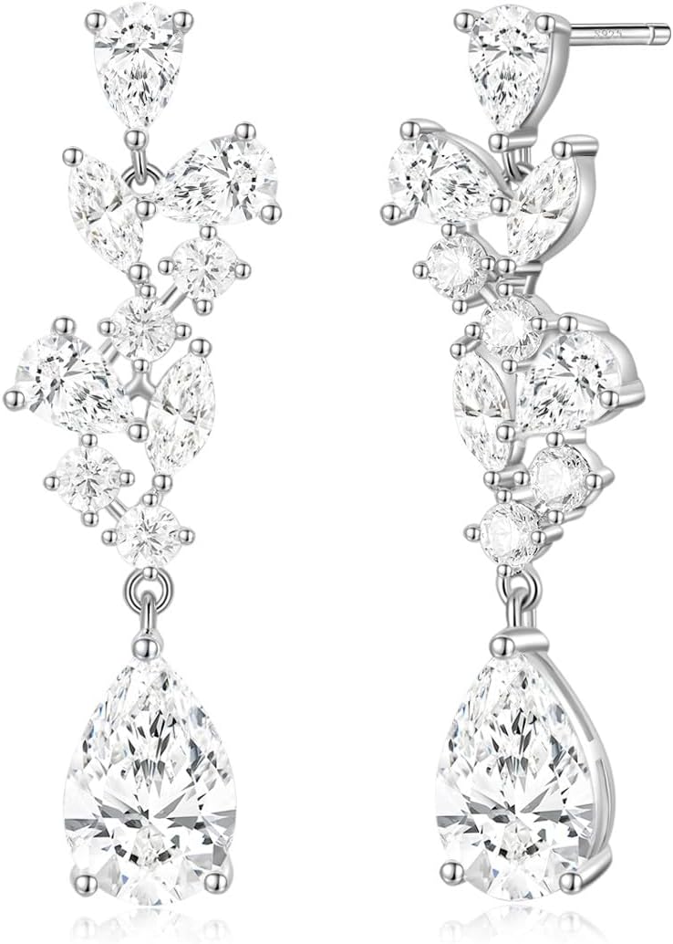 EAMTI Teardrop Wedding Earrings for Women Cubic Zirconia Dangle Bridal Earrings 925 Sterling Silver Post Pear Cut Earring for Prom Bridesmaid
