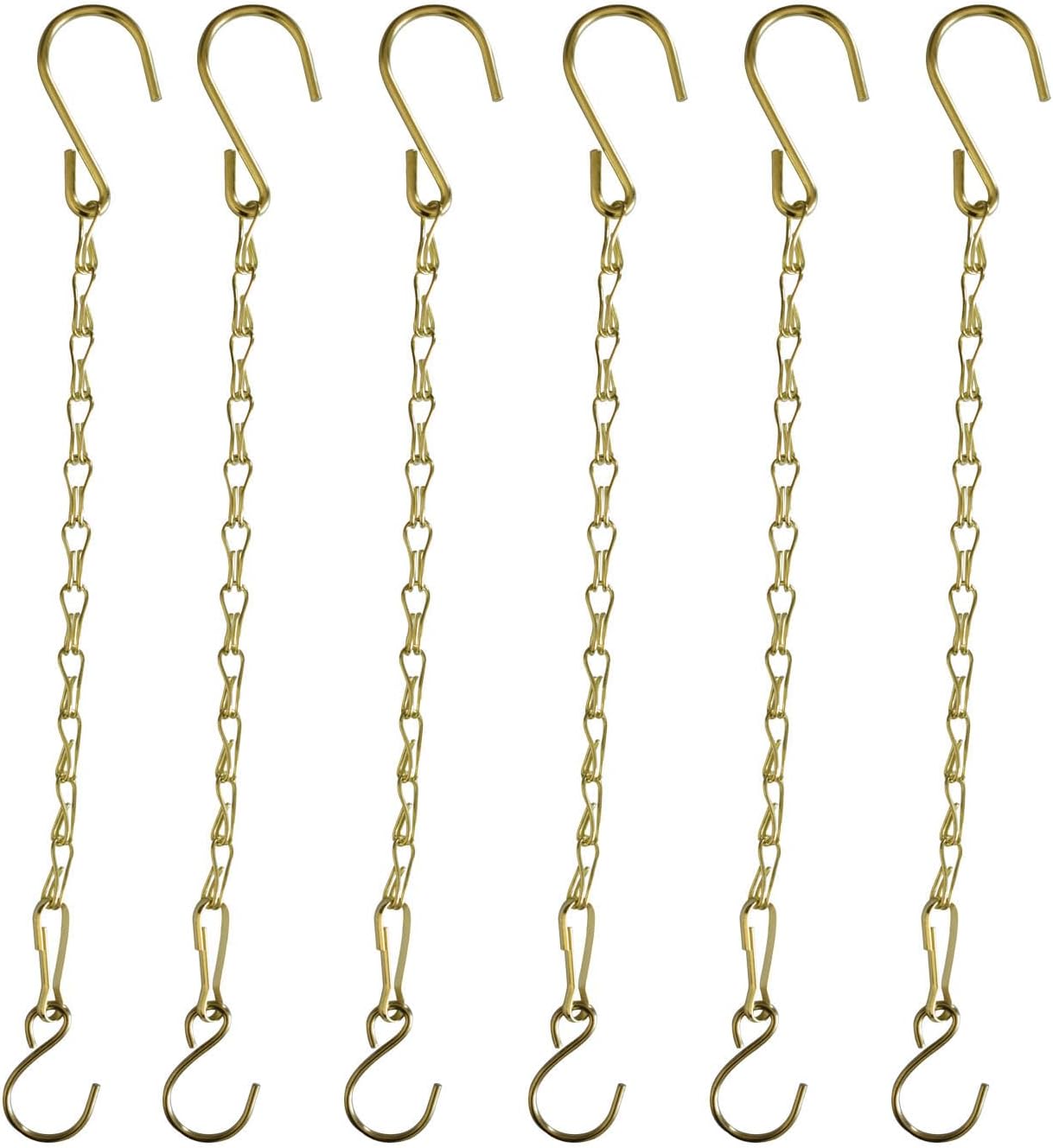 - Package contents:6pcs 11in gold hanging plant extender.The metal gold chain with 1.97 inch large S hooks, 1.5 inch hook and 1.2 inch clips.There are both large and small hooks, which can better fit your flower pots, bird feeders or wind chimes.