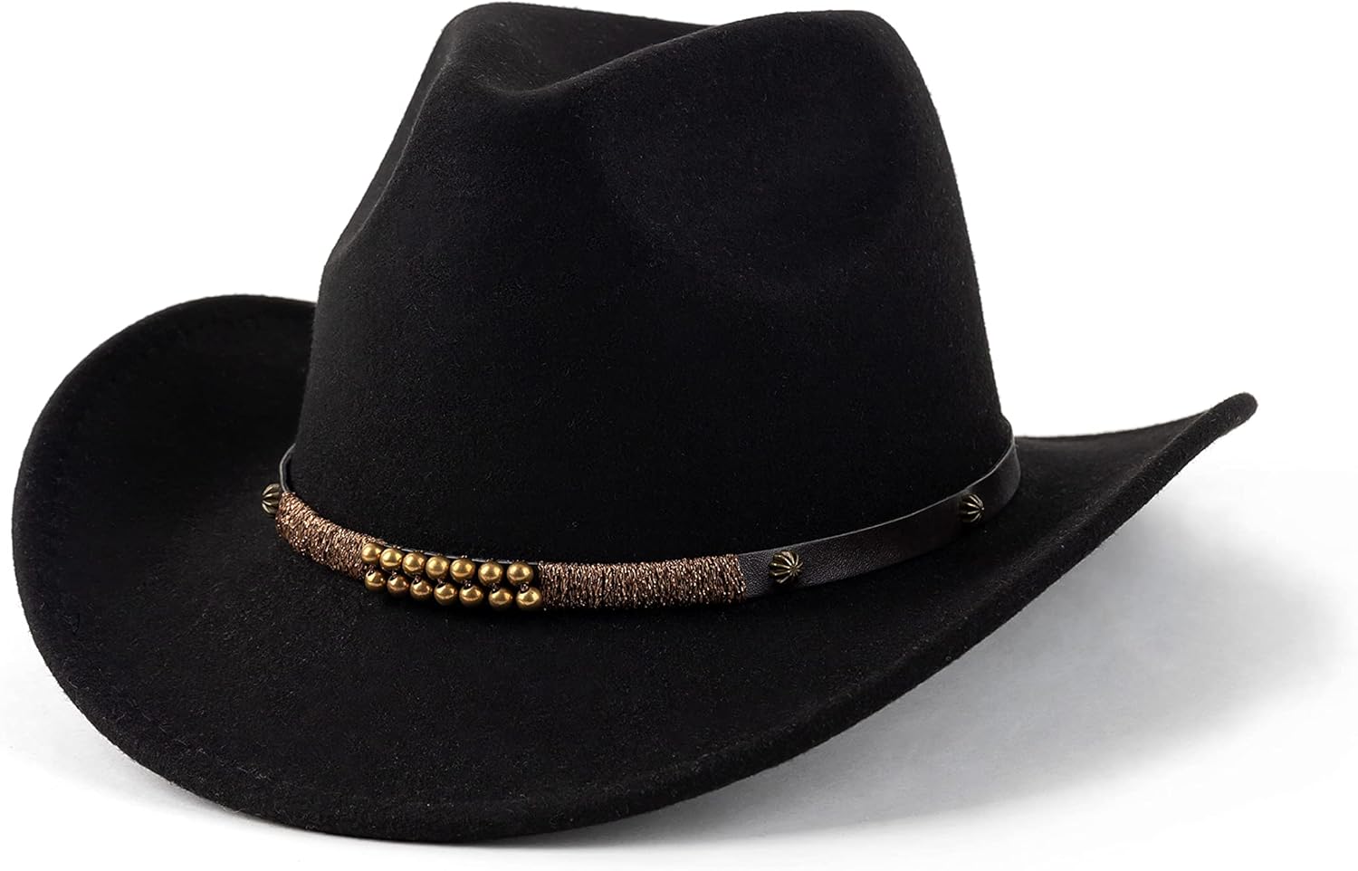 Gossifan Western Cowboy & Cowgirl Hat Felt Wide Brim Women Men Fedora Hats