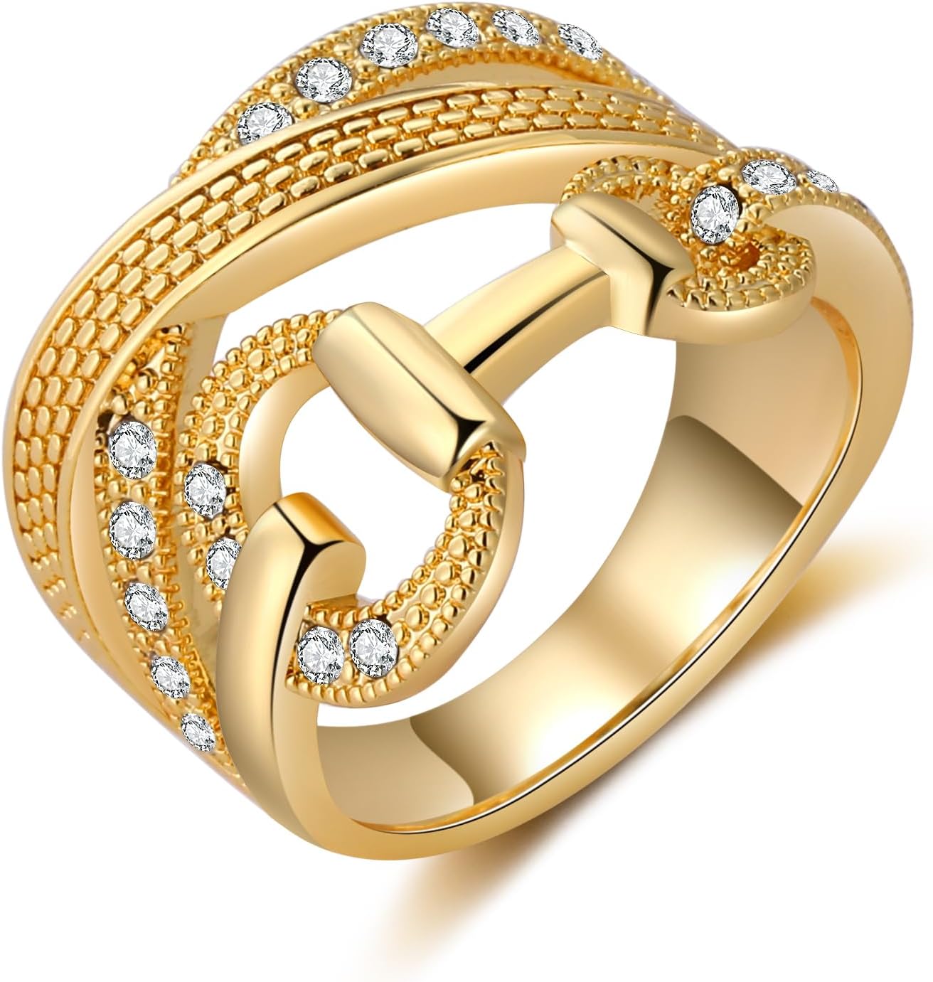 Gold Rings for Women Fashion Vintage Chunky Statement Punk Marcasite Ring Multiple Rows Band Costume Jewelry for Her