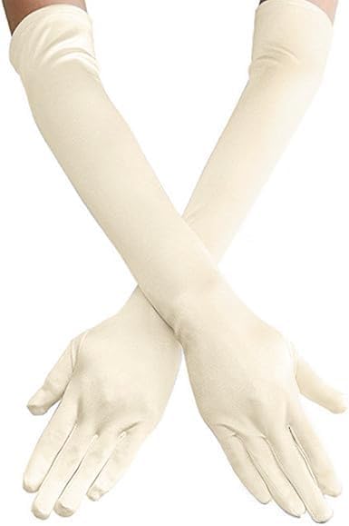 Lansian Long Opera Party Gloves for Women 1920s 20s Satin Gloves Costumes Elbow Length Bridal Evening Dress, 21 inches
