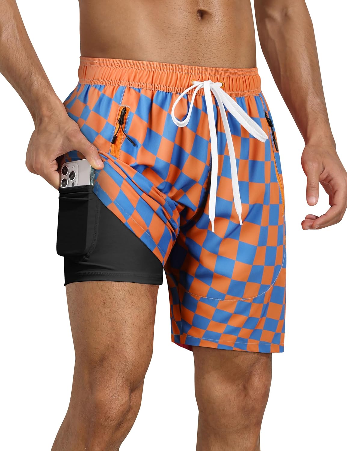 Nonwe Men's Swim Trunks with Compression Liner 2 in 1 Fast Dry Bathing Suits Cargo Surf Shorts with Pockets