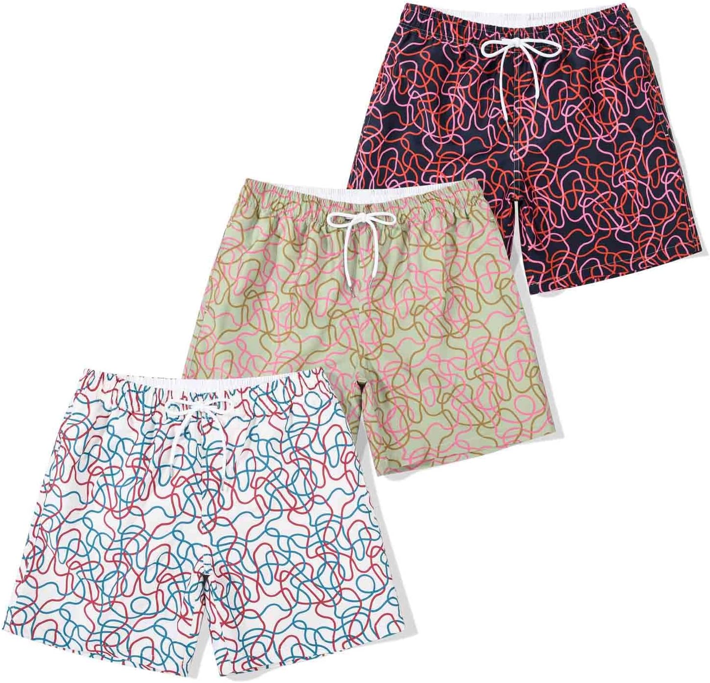 SUNDAY ROSE 3 Pack Mens Swim Trunks with Mesh Lining Quick Dry Swim Shorts Bathing Suit for Men
