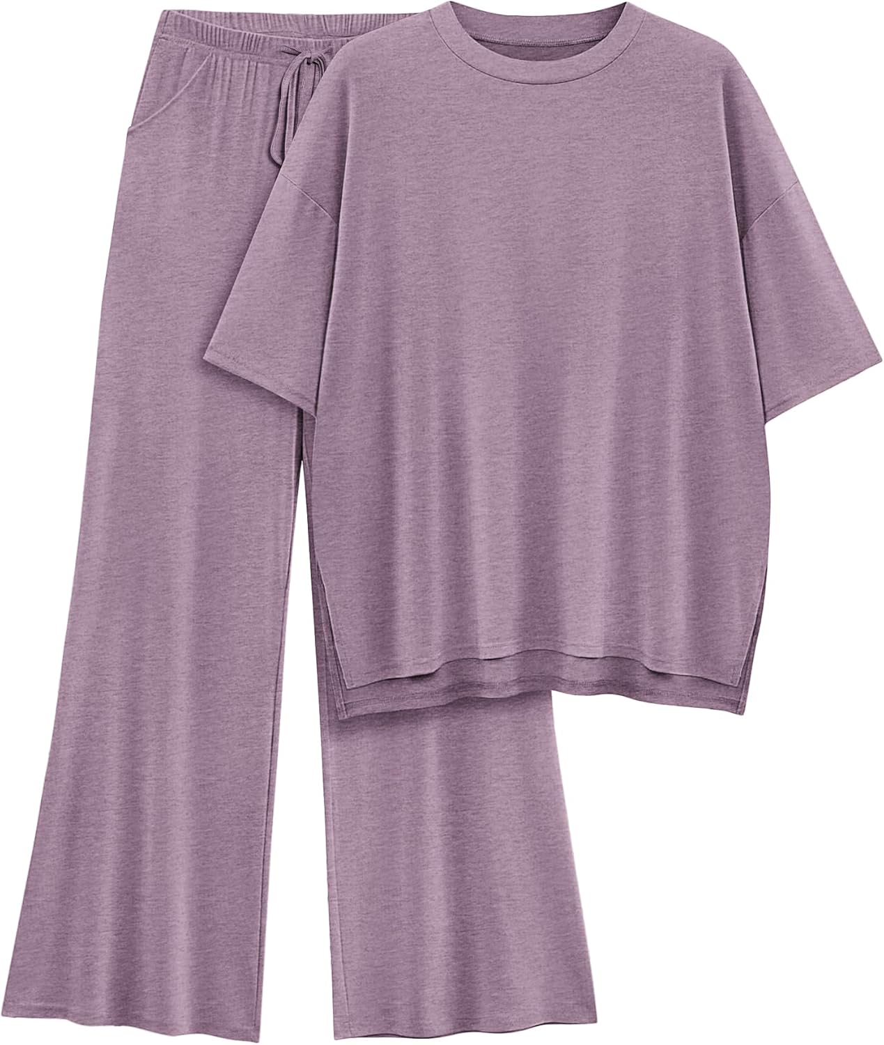 Womens Lounge Set 2026 Summer 2 Piece Outfits Oversized Short Sleeve Tops & Wide Leg Pant Matching Sets Clothing
