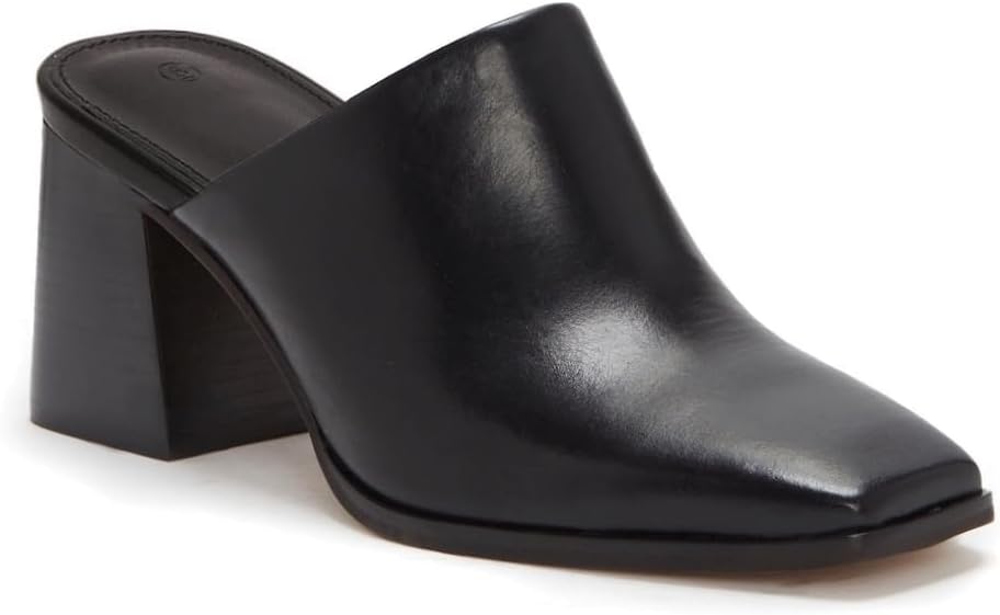 Trish Lucia Womens Chunky Stacked Heel Mules Closed Square Toe Heeled Slip on Clogs Casual Backless Loafers Shoes