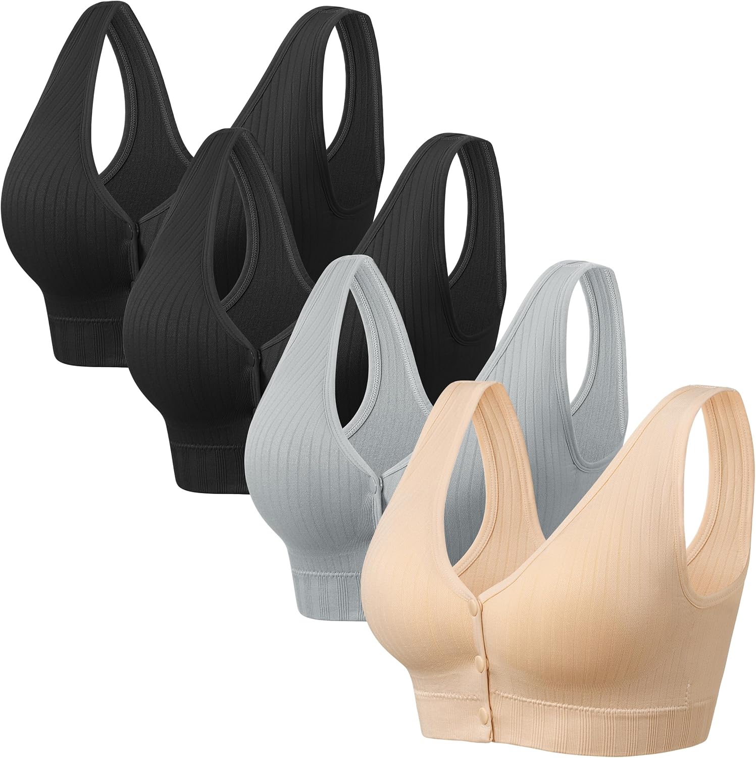 Angelhood Front Close Wireless Bras for Women, Smoothing Padded Bralette, Comfortable Snap Closing Bras, 4 Pack