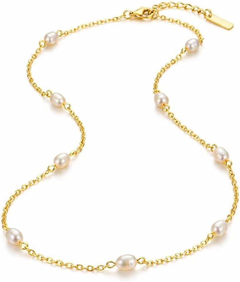 Mchic Gold Pearl Necklaces for Women Trendy: Dainty Layered Necklace 18K Real Gold Plated Waterproof Non Tarnish Chain Choker Stack Simple Necklaces Jewelry Gift for Women