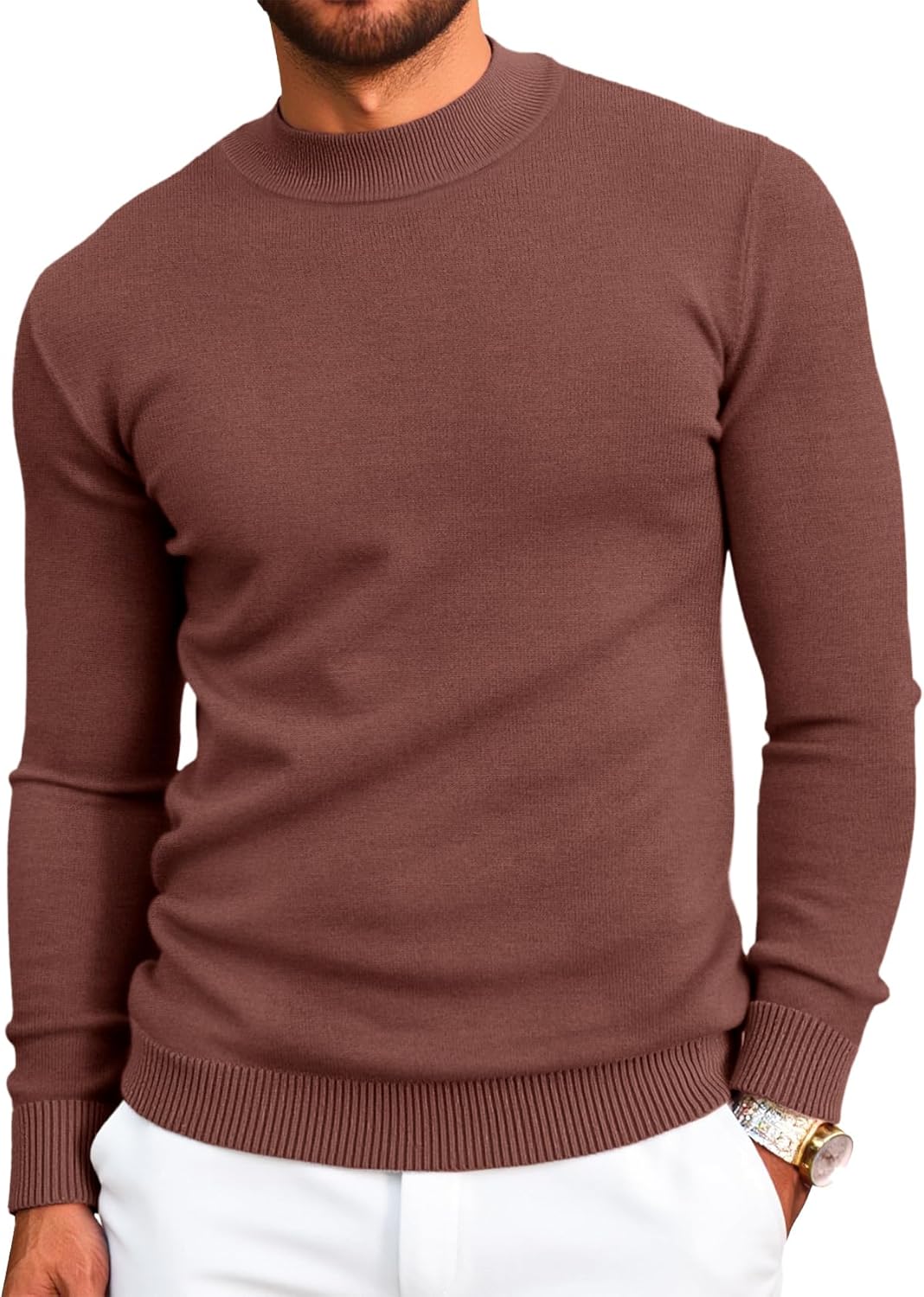 Runcati Mens Mock Turtleneck Pullover Slim Fit Casual Basic Thermal Knit Sweater Lightweight Long Sleeve Pullover Tee