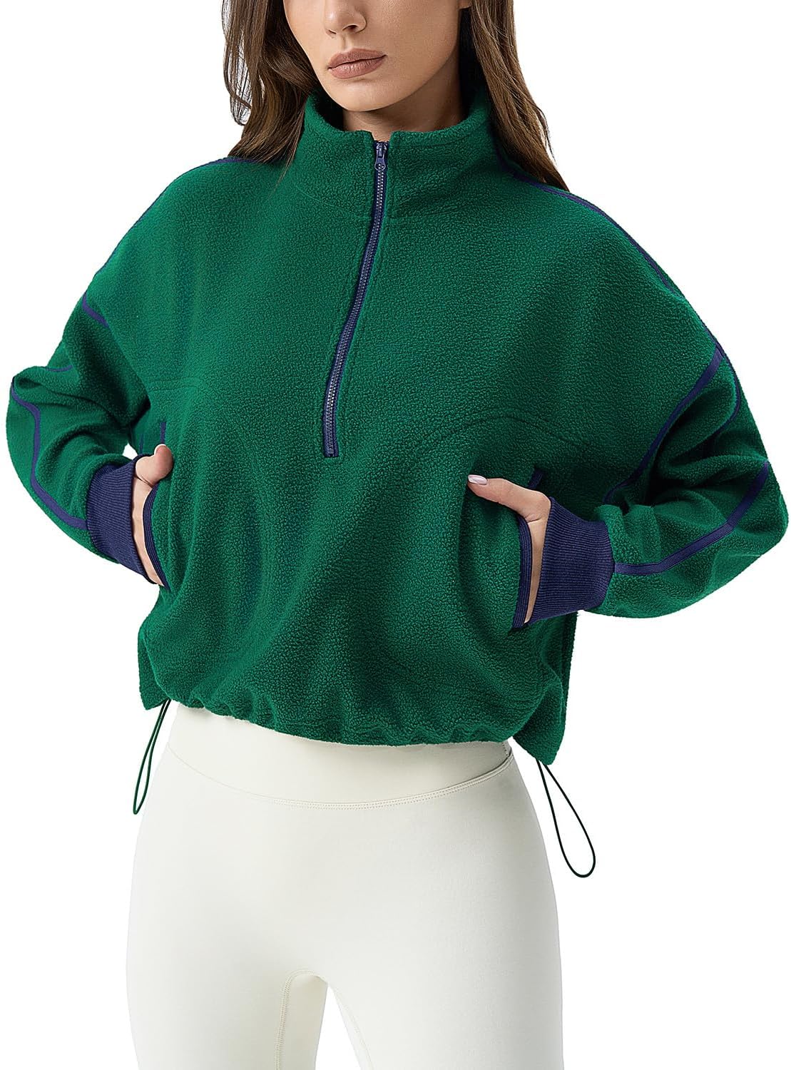 QINSEN Women's Half Zip Fleece Short Pullover Sweatshirt Winter Long Sleeve Cozy Sherpa Sweater Top