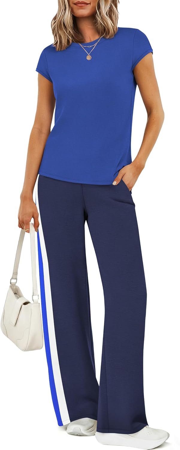 Casly Lamiit 2 Piece Lounge Set for Women 2026 Cap Sleeve Top Wide Leg Pants Sweatsuits Airport Travel Clothing Sets