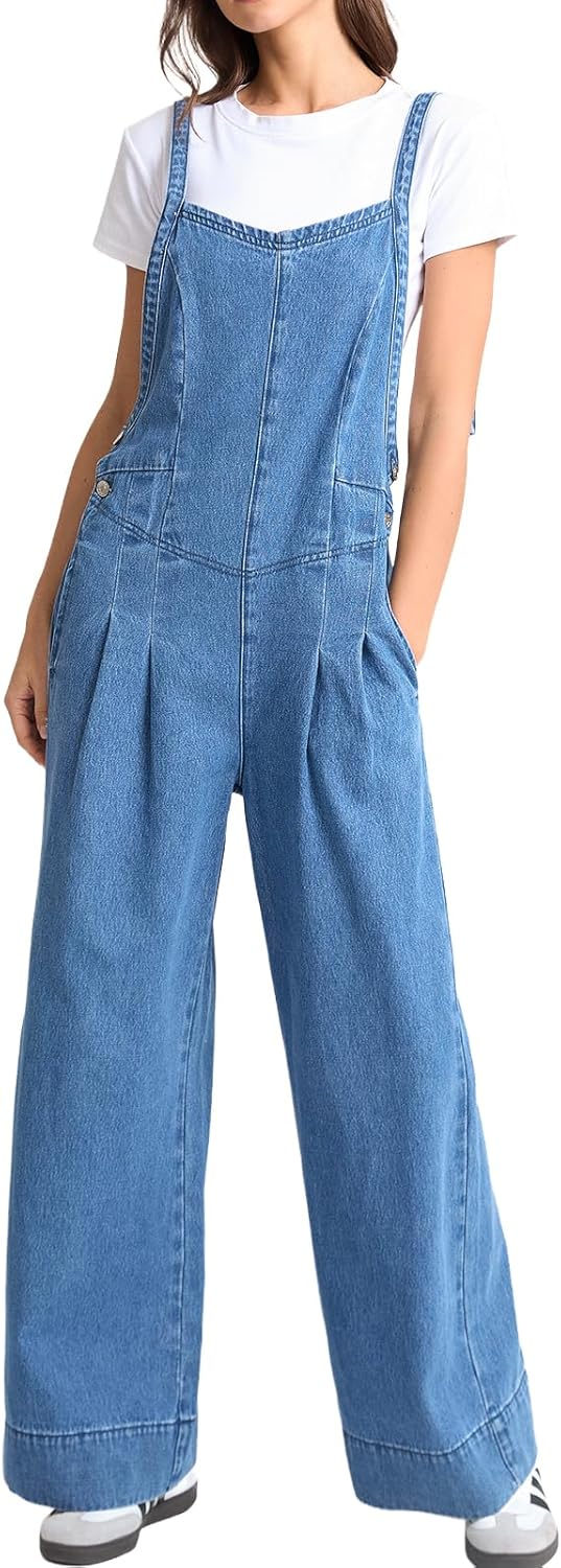 SCOFEEL Women's Denim Overalls Straight Wide Leg Jean Jumpsuits Adjustable Strap Loose Fit Jean Bib Rompers with Pocket