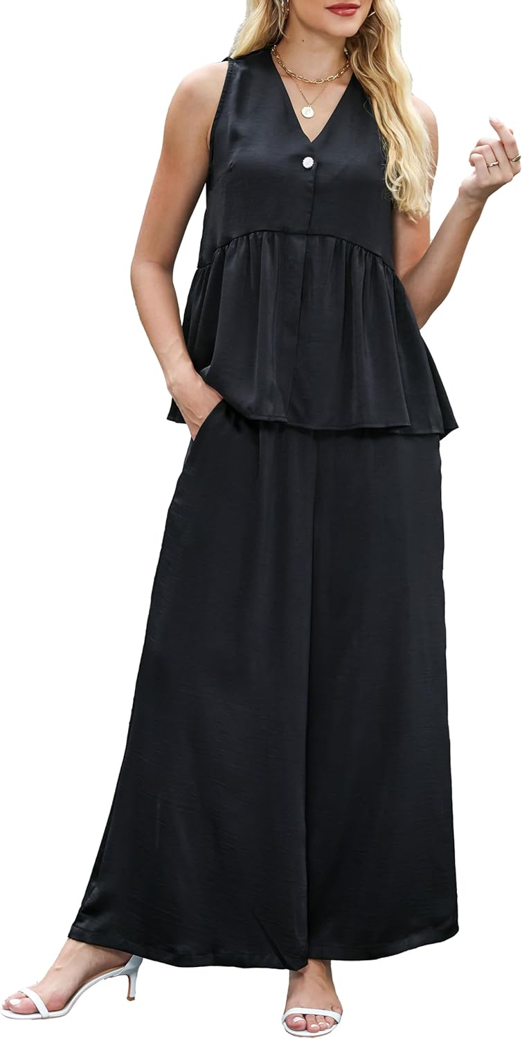 Women's Lounge Sets 2 Piece Matching Pajamas Spring Summer Casual Sleeveless Ruffled Sleepwear Nightwear Pjs Sets