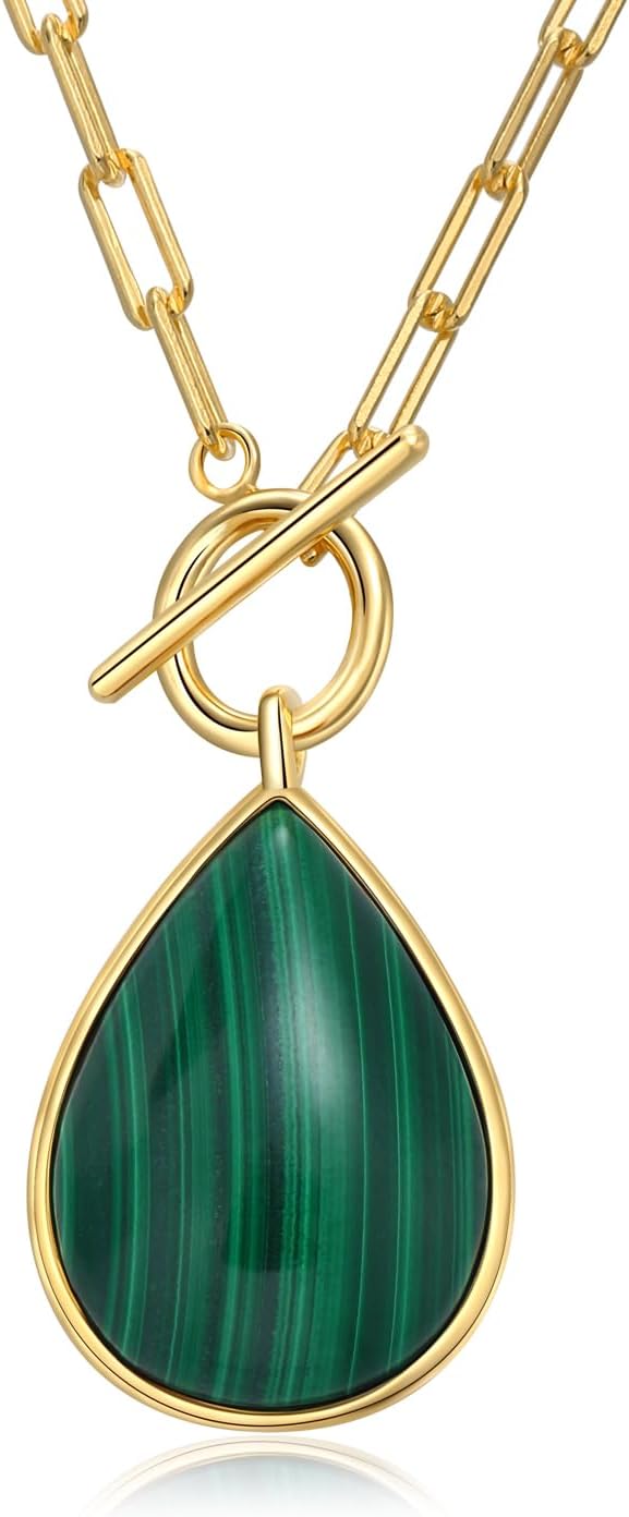 AIBAO Natural Turquoise/Coral/Lapis Lazuli/Malachite Necklaces for Women Sterling Silver Gemstone Toggle Necklace Western Boho Jewelry