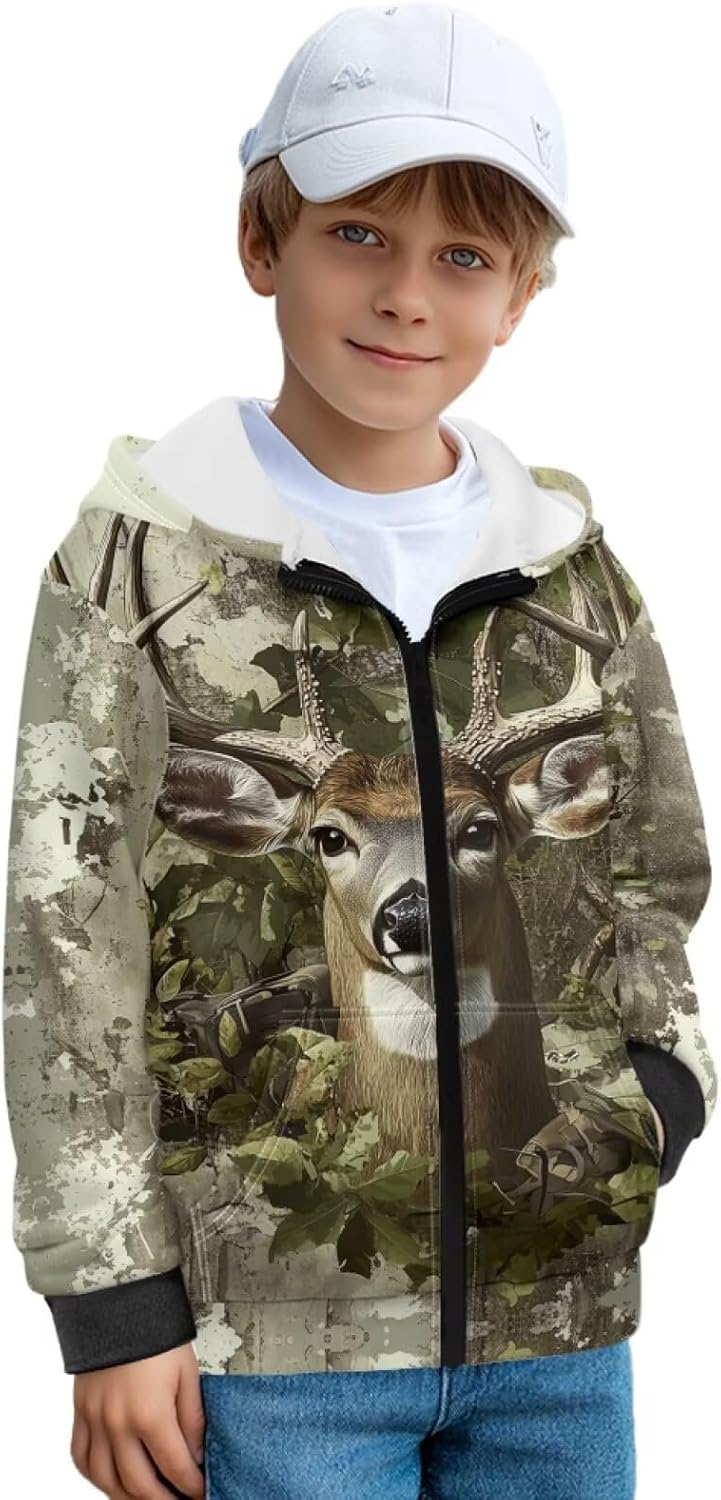 WELLFLYHOM Zip Up Boys Sweatshirt Graphic 6-16 Long Sleeve Fleece Lining Hoodie Kangaroo Pocket Full Zip Kids Sweater