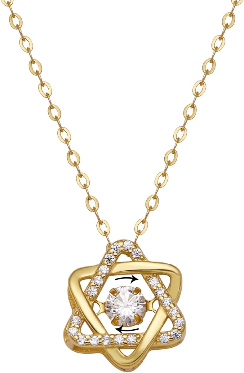 WETMT Star of David Pendant Necklace for Women Gold/Silver/Rose Gold Moving Zirconia Pendant Necklace Minimalism Star of David Necklace Funny Star Fidget Necklace Jewelry
