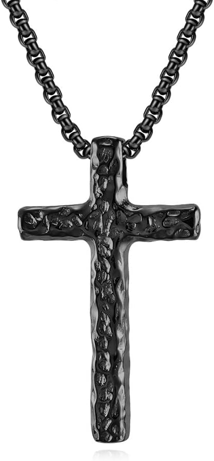Cross Necklace for Men,Stainless Steel Textured Silver/Black Cross Pendant Religious Necklace Chain Christian jewelry 60 cm/23.6 inches