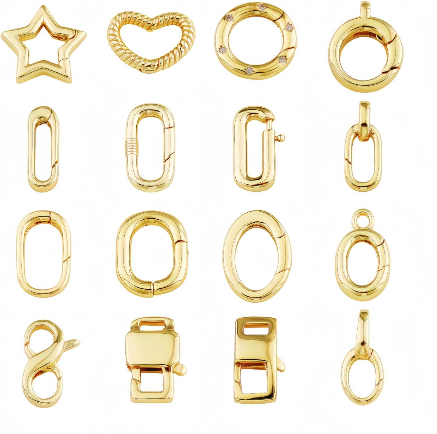16PCS 18K Gold Filled Oval Carabiner Clasp, Lobster Claw and Spring Clasps for DIY Jewelry Making, Necklace Bracelet Keychain Findings (Style 2)