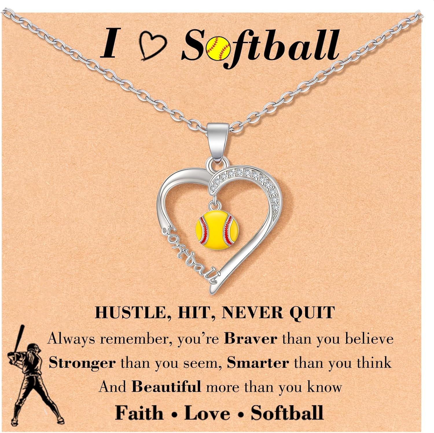 Tarsus Softball/Basketball/Volleyball Heart-Shaped Necklace for Teen Girls, Birthday Christmas Players Senior Night Team Gifts for Girls