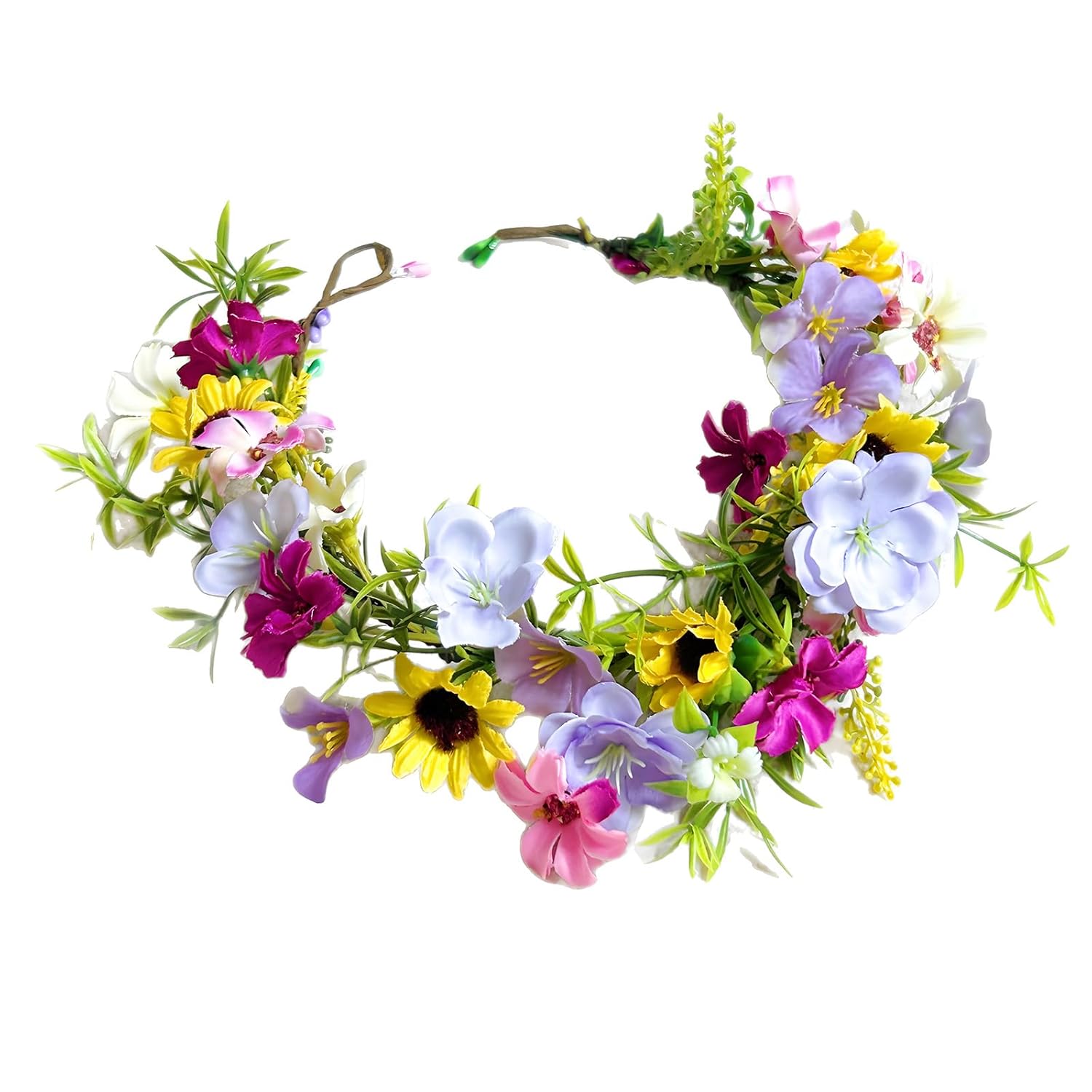 Fairy Flower Crown Headband, Artificial Sunflower Daisy Floral Headpiece, Boho Forest Woodland Flower Headband for Women Girls Maternity Birthday Wedding Renaissance Festival Hair Accessory