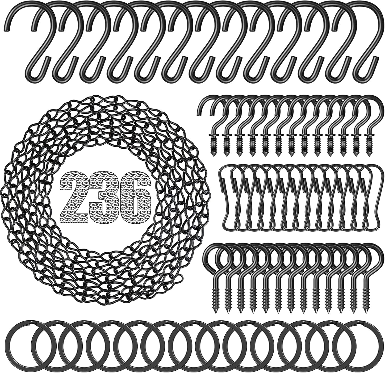 - 【DIY Hanging Chain】: Include 236 Inch Metal Black Hanging Chian,13pcs S hooks,13pcs eye hooks, 13pcs rings,13pcs Screw hooks and 13pcs Clips.You can diy the chains shorten or lengthen the length to match you need.Our plant hangers are provided hooks and clips. You can customize differents style for various items