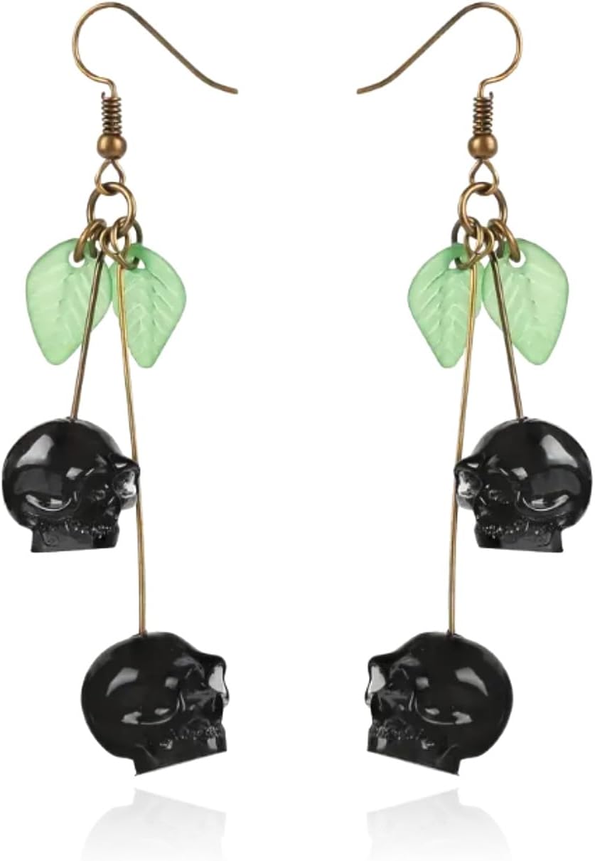 Cherry Skull Earrings Halloween Earrings for Women Skull Jewelry Statement Earrings for Halloween Costumes Spooky Gothic Drop Earrings