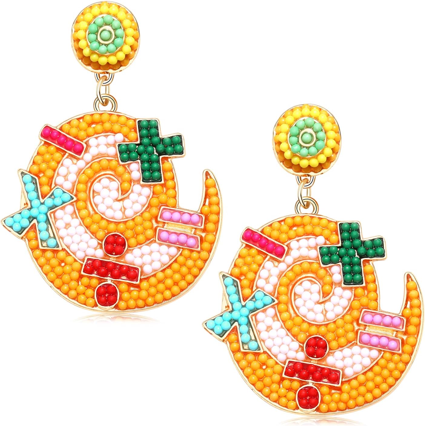 Teacher Pencil Earrings for Women Beaded Pencil Dangle Earrings Statement Rainbow Match Apple Earrings Back To School Jewelry Teacher Appreciation Gift