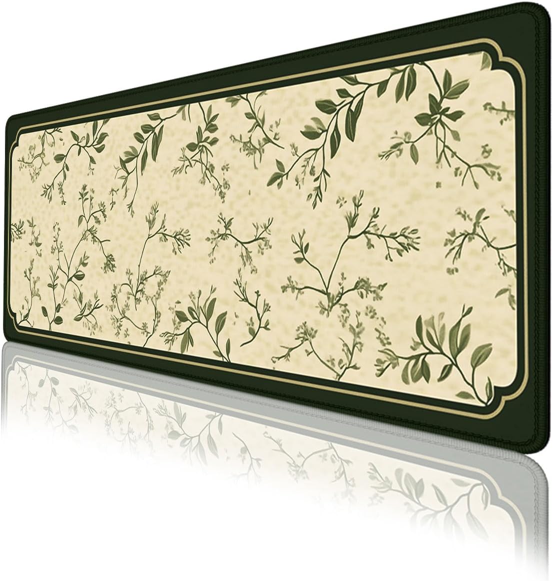 Vintage Botanical Large Gaming Mousepad, Green Vines Desk Mat for Keyboard, Large Gaming Mouse Mat with Stitched Edges,Non-Slip Waterproof Rubber Base Mous Mat, 31.5" x 11.8"