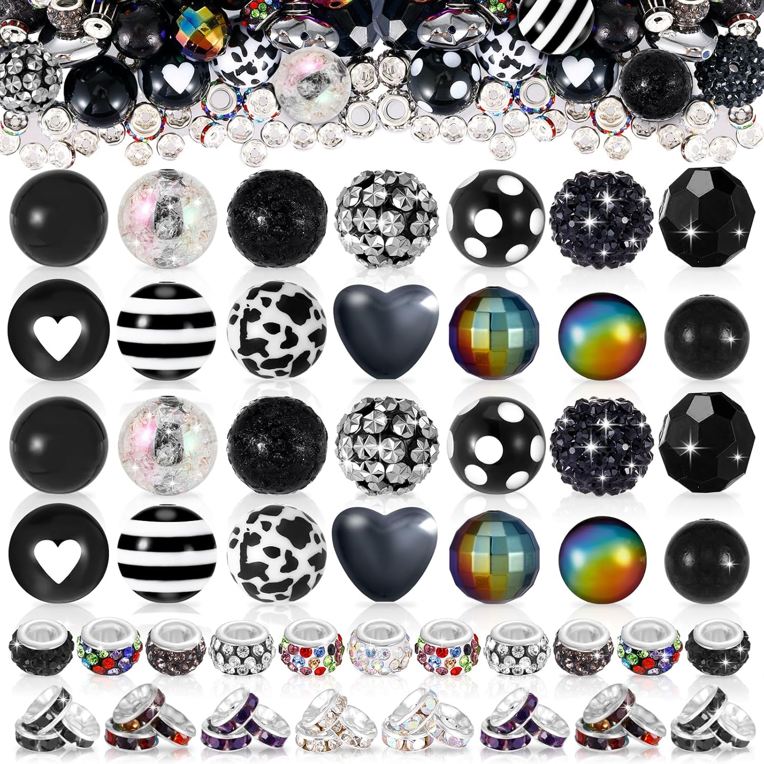 112 Pcs Beads for Pens, Spacer Beads, Chunky Bubblegum Bead, Rhinestone Bead for DIY Beadable Pen Jewelry Making