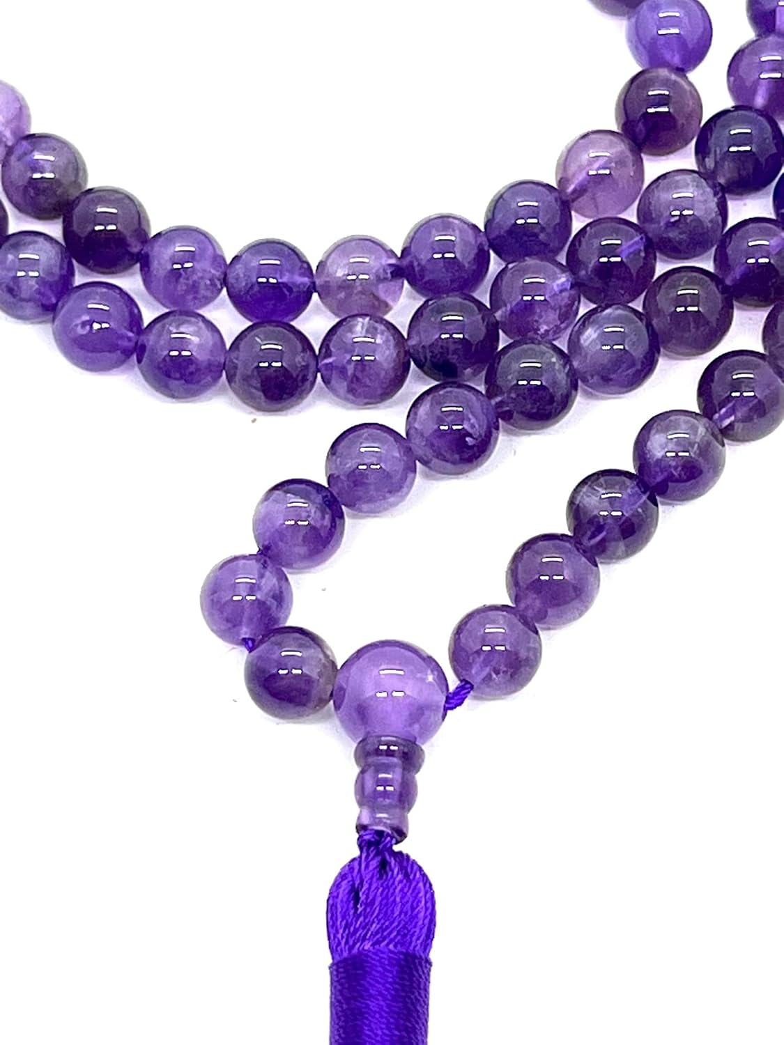 Amethyst Mala Necklace – 108 Beads, Pisces Birthstone, 8mm