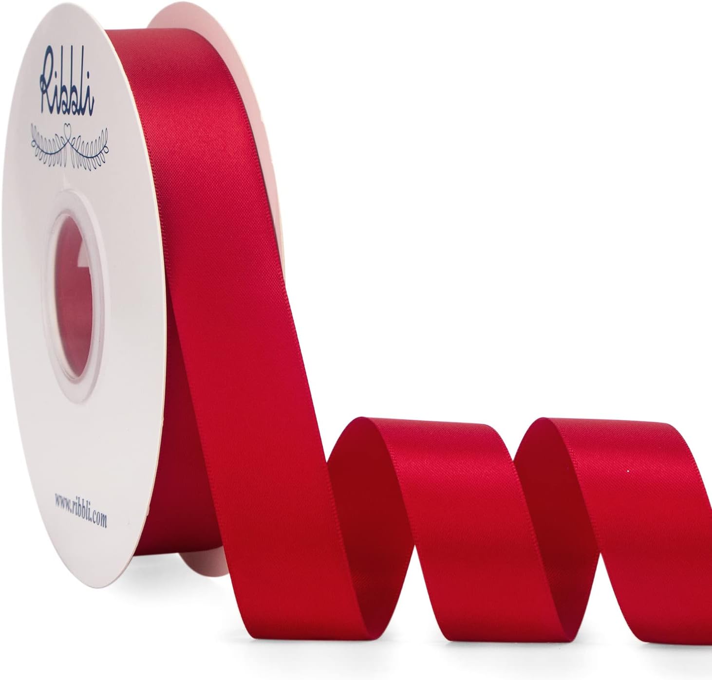 Ribbli Red Satin Ribbon Double Faced Satin 1 inch x Continuous 50 Yards-Red Ribbon for Gift Wrapping Crafts Wedding Decoration Bows Bouquet Floral Arrangement