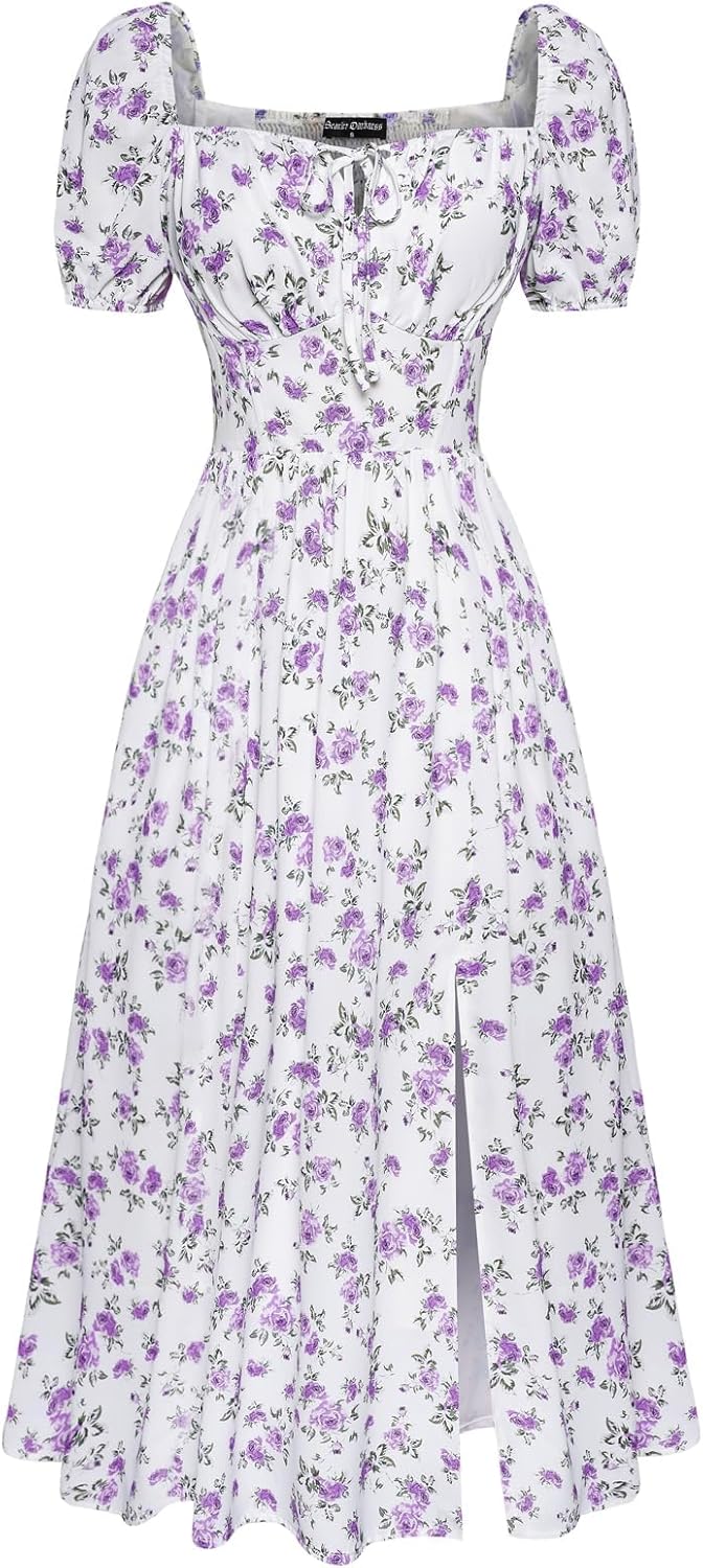 Scarlet Darkness Women's Floral Corset Dress with Split 2026 Summer Spring Square Neck Midi Milkmaid Dresses