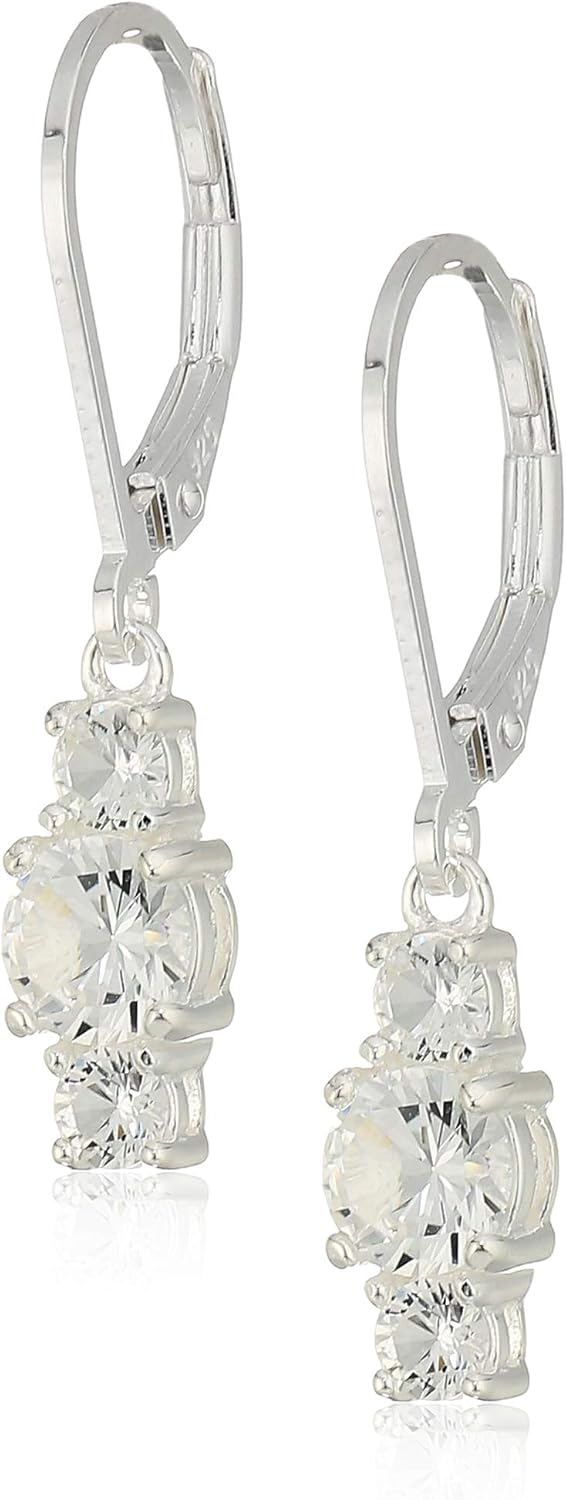 Amazon Collection Sterling Silver Genuine and Created Gemstone Three Stone Birthstone Leverback Dangle Earrings