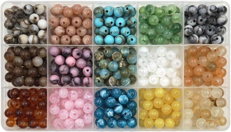 INSPIRELLE Acrylic Beads 450pcs Imitation-Gemstone Round Loose Beads for Jewelry Bracelets Necklace Making