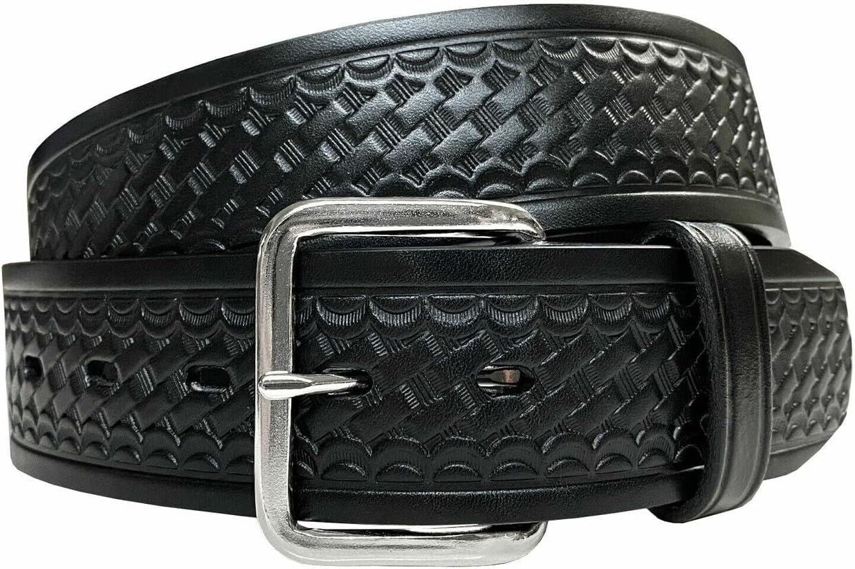 Utility Uniform Work Belt Basketweave Embossed One Piece Full Grain Belt 1-3/4"(45mm) Wide, Multi-Style Options