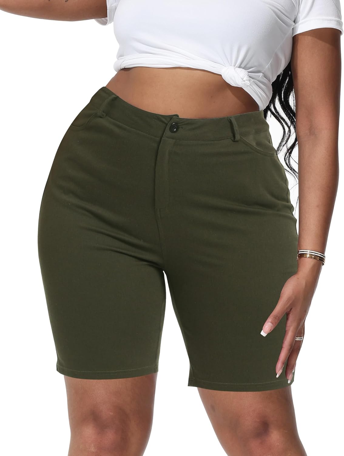 Womens Plus Size Bermuda Shorts Stretchy High Waisted Summer Casual Midi Shorts