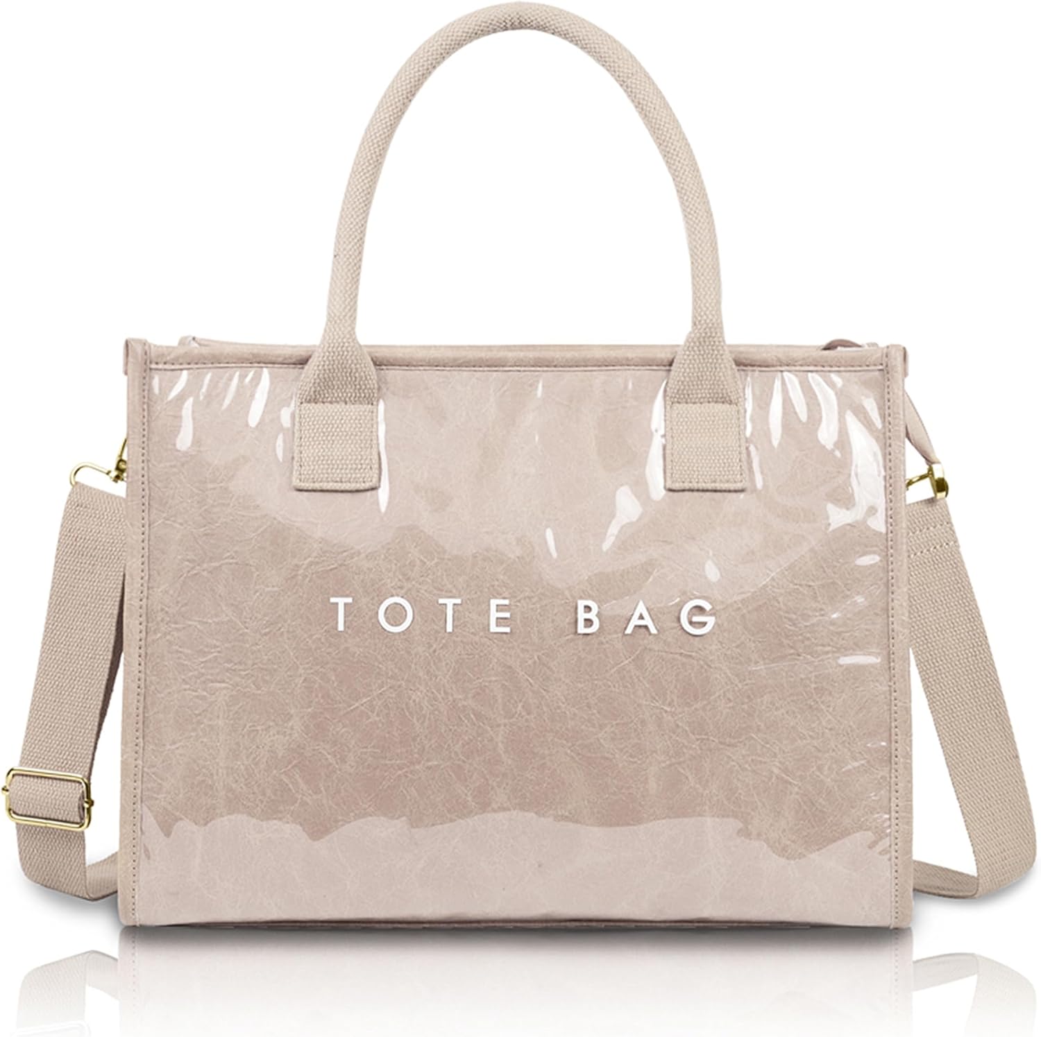 PVC Tote Bag for Women Letters Print Hobo Handbags Kraft Paper Shoulder Bag with Strap for Work Travel