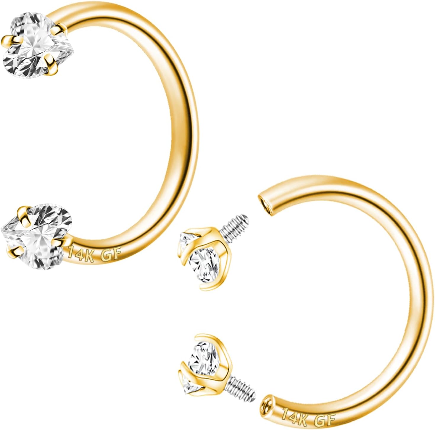 2 Pcs 14K Gold Filled Internal Thread Horseshoe Nose Ring,16G 18G 316L Stainless Steel Circular Barbell Helix Snug Tragus Rook Daith Cartilage Earring Lip Ring Piercing Jewelry for Women Men