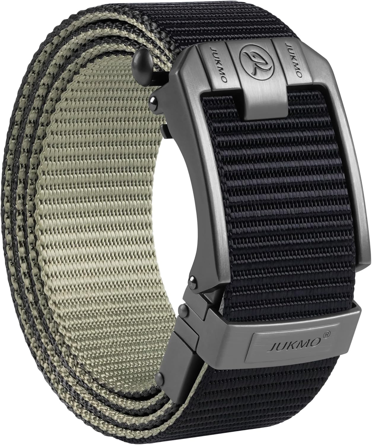 JUKMO Men's Reversible Ratchet Belt - 2 Styles in 1, No-Hole Adjustable Web Belt for Golf, Business & Everyday Wear