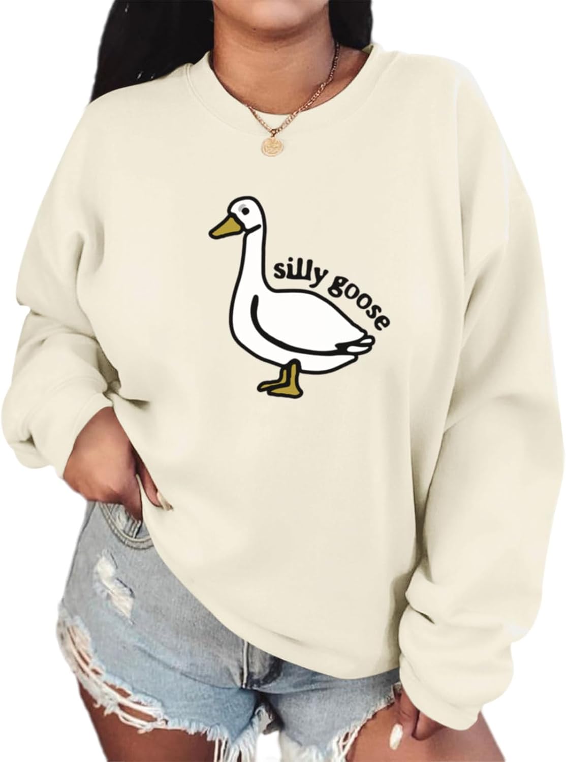 Cute Silly Goose Sweatshirt for Women Teen Girls Duck Letter Graphic Crewneck Long Sleeve Shirt Hoodie Pullover Tops