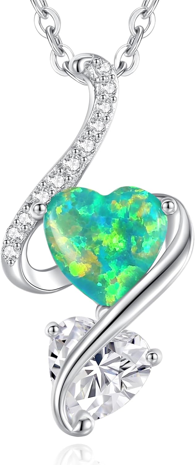 LOUISA SECRET 925 Sterling Silver Opal Birthstone Necklace, Unique Tiny Double Heart Pendant Jewelry, Engraved with "S925 I Love You" Best Birthday Gift for Women Wife Girlfriend Mom Her, Christmas Day Valentine's Day Anniversary Mother's Day