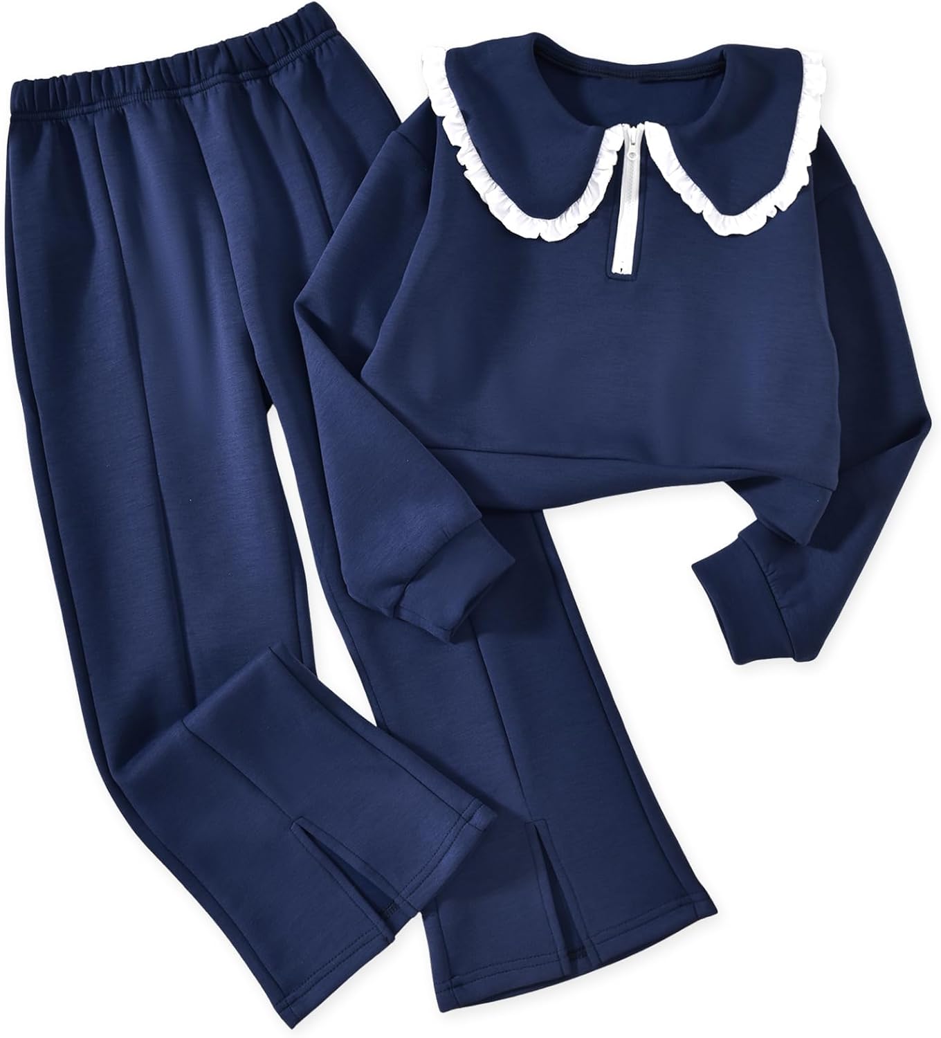 HIHA Girls Doll Collar Half Zip Sweatshirt Flare Pant Set for 6-12 Years