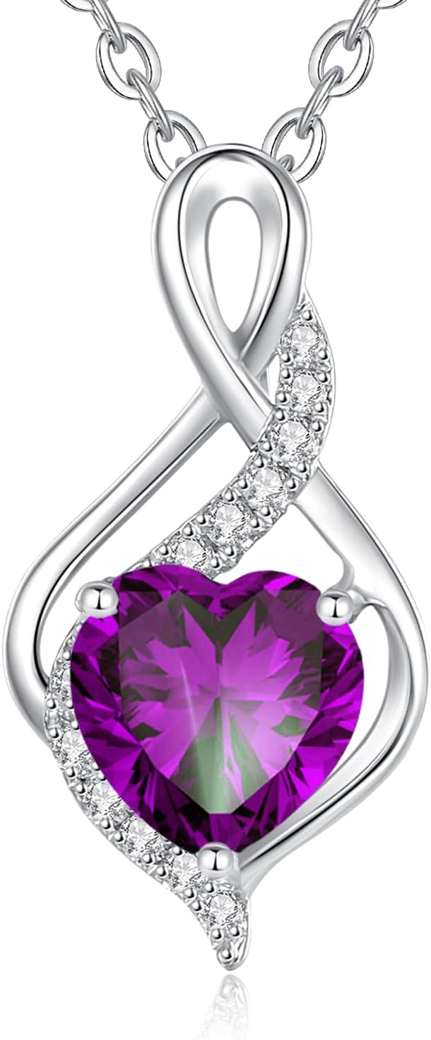 FANCIME 14K Solid White Gold Infinity Heart Birthstone Necklace for Women with Diamond Pendant Birthday Gifts for Mom Women Sterling Silver Chain 16" + 2" Extender