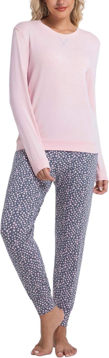 ENJOYNIGHT Womens Pajamas Set Long Sleeve Loungewear 2 Piece Pjs Sets with Pockets