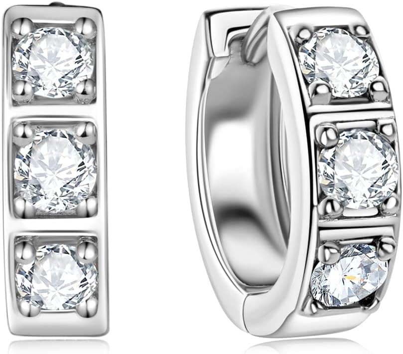 Moissanite Hoop Earrings Men, Lab Created Imitation Diamond 925 Sterling Silver Hypoallergenic 4.5MM Male Huggie, Anniversary Valentines Jewelry Gifts for Men Husband