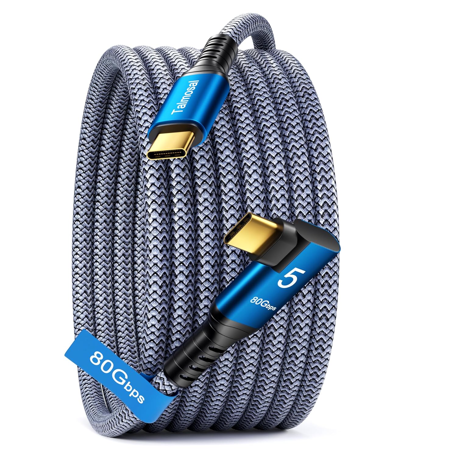 - 240W Power Delivery: 1 foot USB C cable for Thunderbolt 5 cable right angle can charge laptops, tablets, and devices at up to 240W while transferring data simultaneously. Ideal for high-power workstations and gaming setups, reducing cable clutter with a single-cable solution