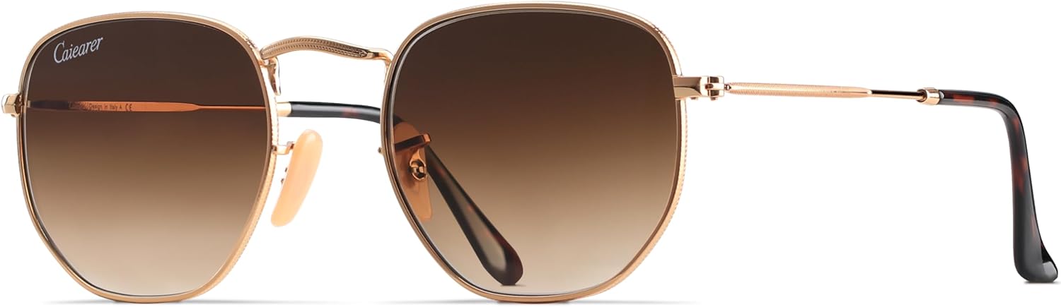 Hexagon Style Flat Glass Lenses Metal Frame Sunglasses UV400 Protection For Men Women