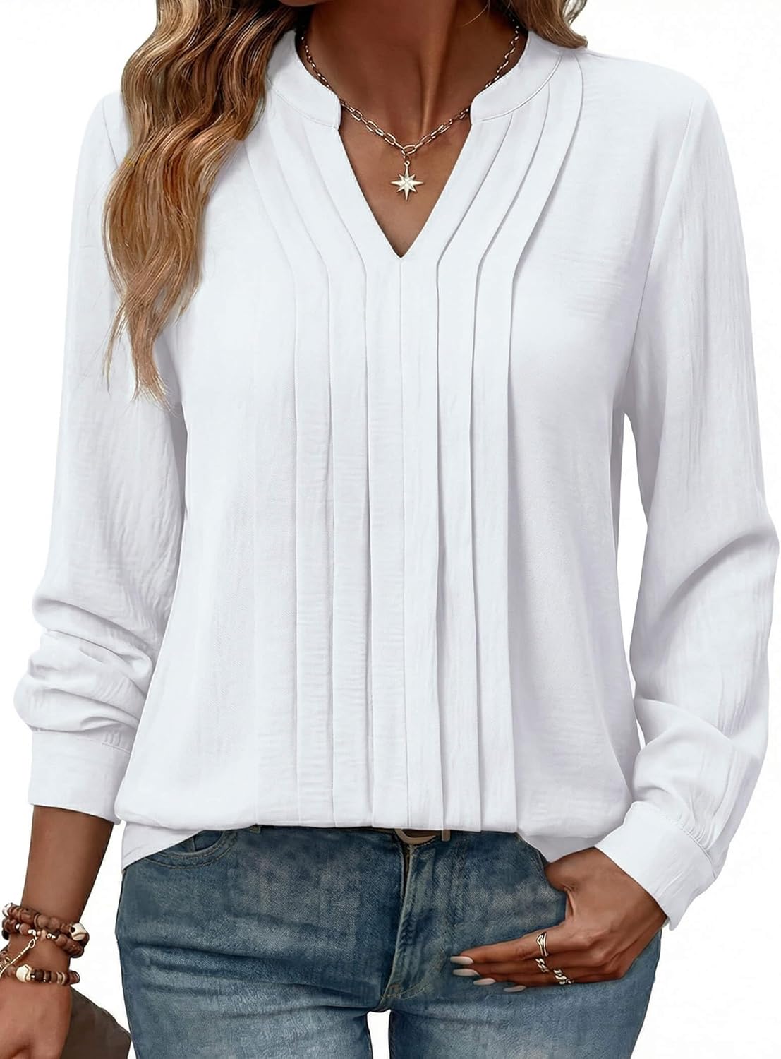 Blooming Jelly Women's Dressy Casual Blouses Business Work Tops Long Sleeve V Neck Pleated Shirts 2026 Fall Outfits