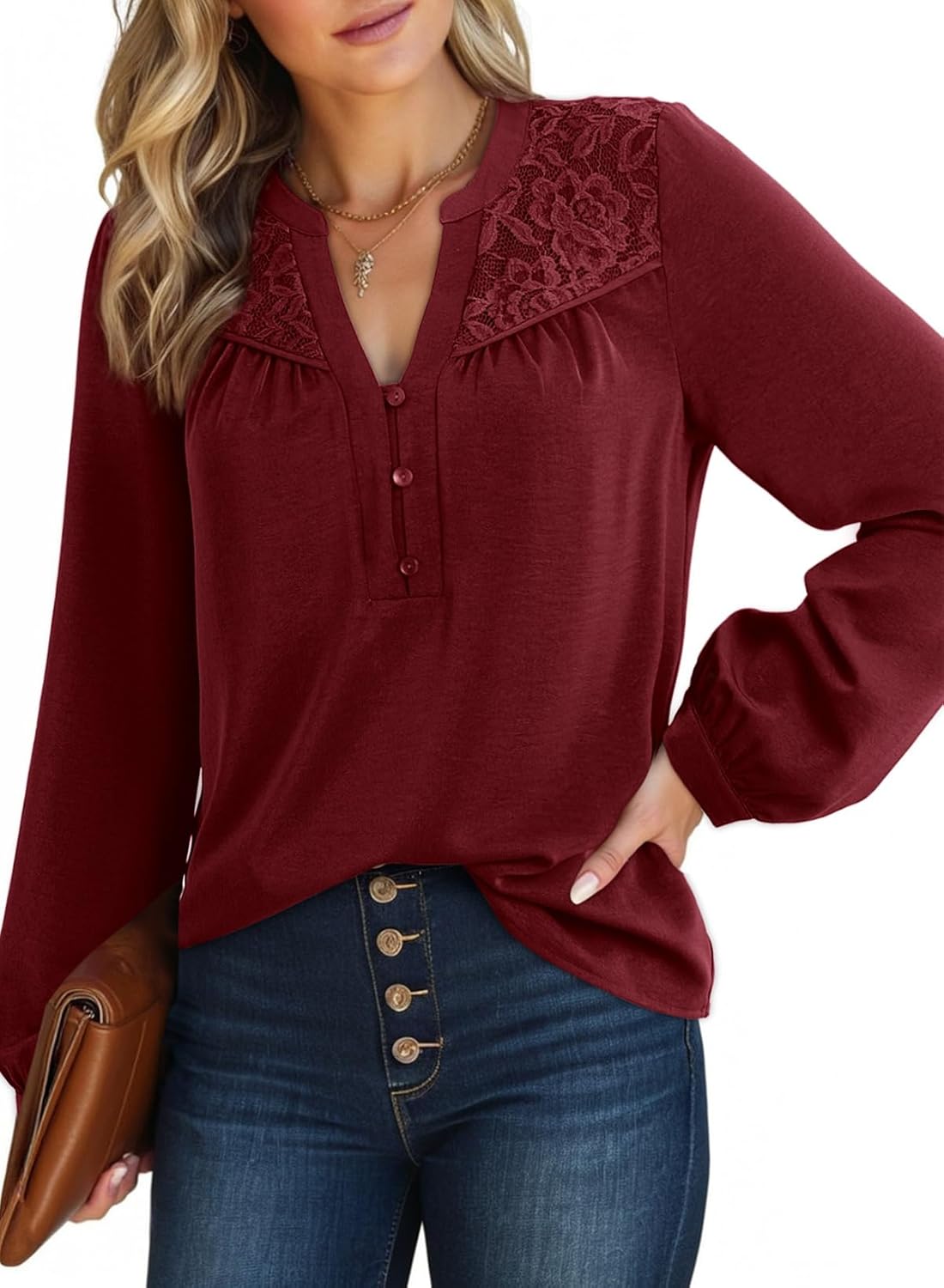 Dokotoo Womens Tops Dressy Casual Blouses Business Work Button Down Shirts V Neck Long Sleeve Shirts
