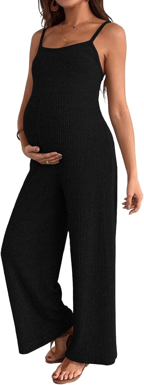 BLENCOT Maternity Ribbed Jumpsuit Sleeveless Square Neck Wide Leg Stretchy One Piece Romper